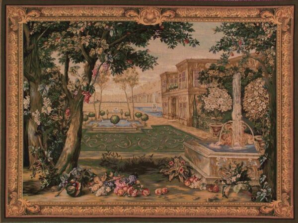 This depiction, stripped of its characters, is based on a famous Oudenaarde tapestry inspired by the mythological story of Venus and Adonis.