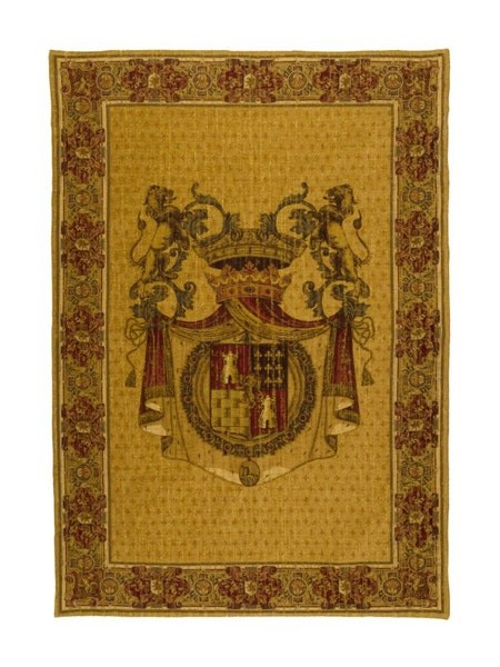Tapisserie reproduisant le blason de la ville de Tours. Cette tenture est une inspiration. En effet, le blason officiel de Tours comporte 3 petites tours.